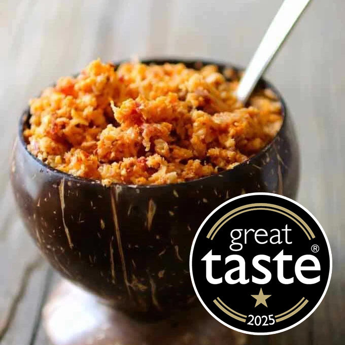 We’re proud to have been awarded a prestigious Great Taste Award for our Pol Sambol, a huge honour in the world of food. The judges described it as “warm and inviting,” with “clean, light aromatic notes of coconut and spice” and praised its “chewy, satisfying texture” and “bold, lively heat.” They highlighted the balance of spices, the freshness, and the rich depth of flavour, calling it “a great addition to a curry-loving kitchen.”